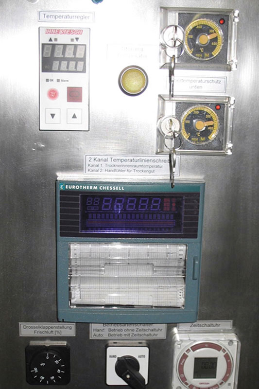 Dieser Umluft-Frischluftofen wird zum Trocknen von gereinigten, nassen Auflageblechen verwendet.